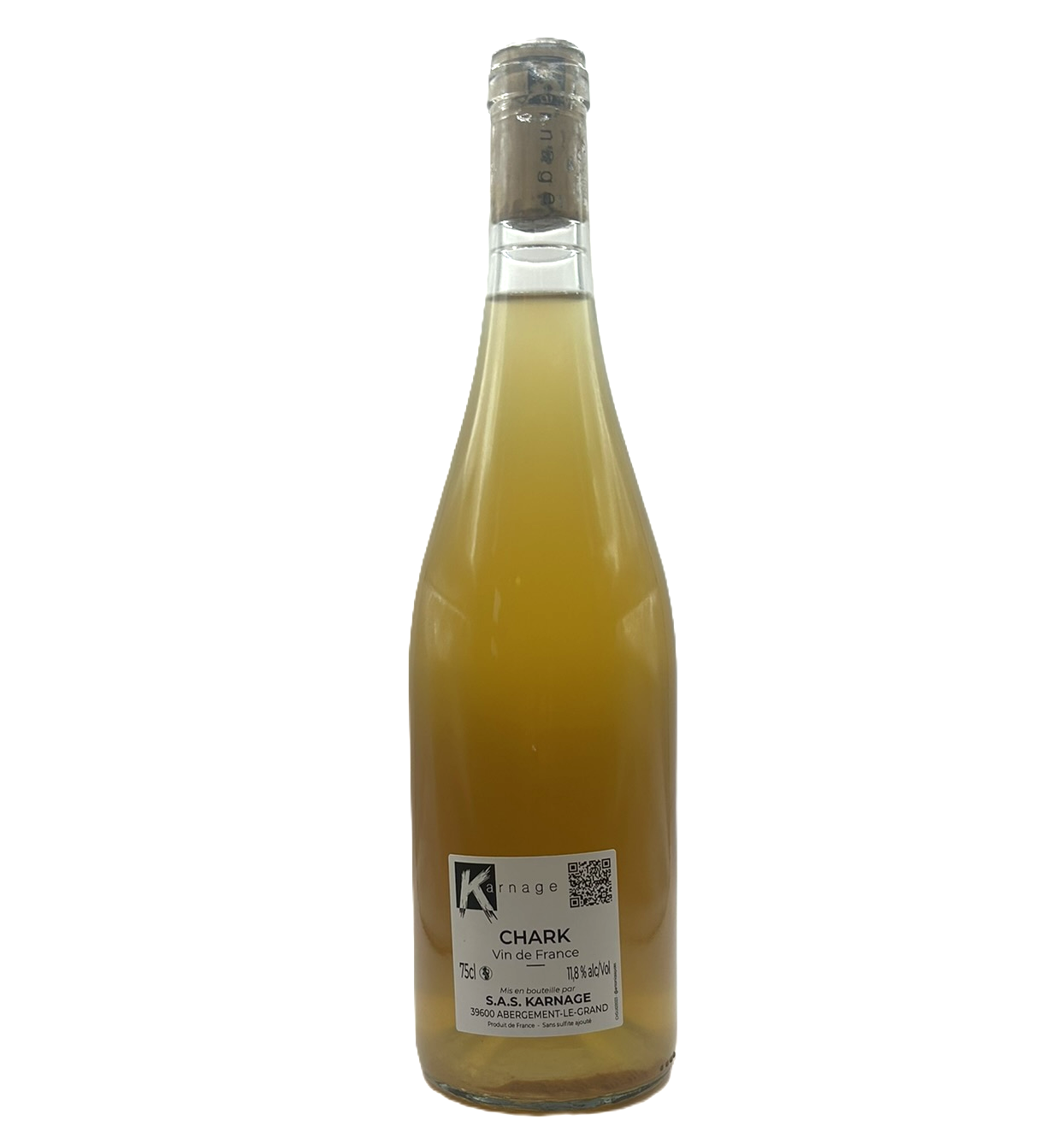 Chark er en vin med klar holdning: naturlig, ufiltreret og præcis. Den viser, at Chardonnay fra Jura kan være langt mere end konventionel hvidvin — her er det vin med kant og karakter, der tør være anderledes. Chark er en hvid naturvin lavet på 100 % Chardonnay-druer fra vinmarken hos Jean‑François Essler i Saint-Agnès, Jura. Høsten skete den 11. september 2023, hvor halvdelen af druerne blev presset med det samme og den anden halvdel macererede med hele klaser i den pressede saft i 18 dage. Ingen omstikning inden flaskning den 1. juli 2024 — det er “pur jus” uden noget tilsat og uden noget taget væk. Farven er lys gylden med en let grønlig nuance. Duften byder på frisk lime og citron, grønne æbler og en let sten-/mineralfornemmelse. Smagen er sprød og energisk, med ren frugt, tydelig syre og en livlig mineralitet, som gør vinen både tilgængelig og karakterfuld.