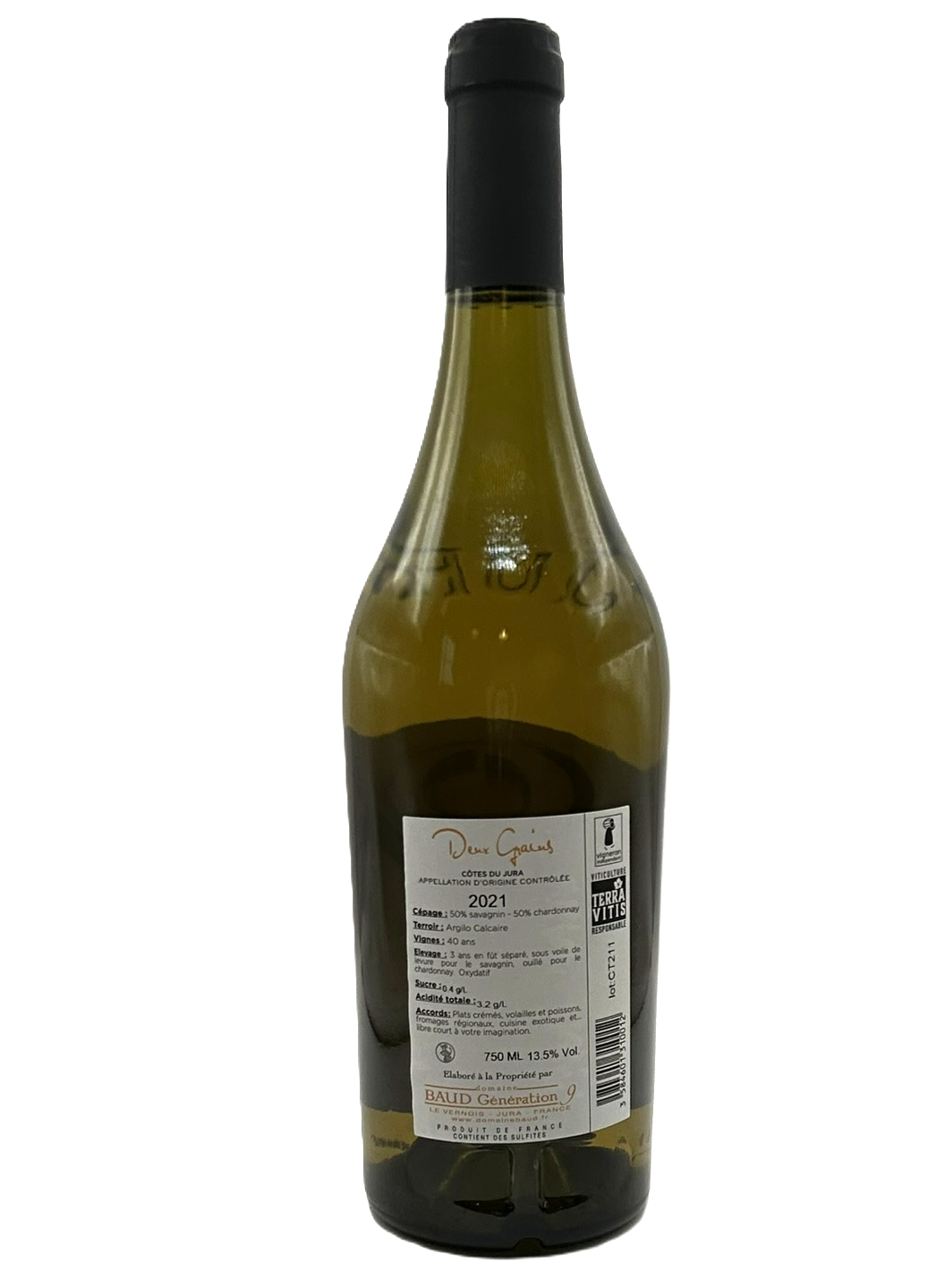 En klassisk Jura-blanding med karakter, dybde og finesse – Domaine Baud i fuld balance mellem tradition og friskhed. Denne cuvée er lavet som et 50/50-blend af Chardonnay og Savagnin. Den kombination giver en perfekt balance mellem fylde og friskhed. Vinen lagres på fad i cirka tre år for at udvikle en let oxidativ stil, som er typisk for Jura-regionens karakter.