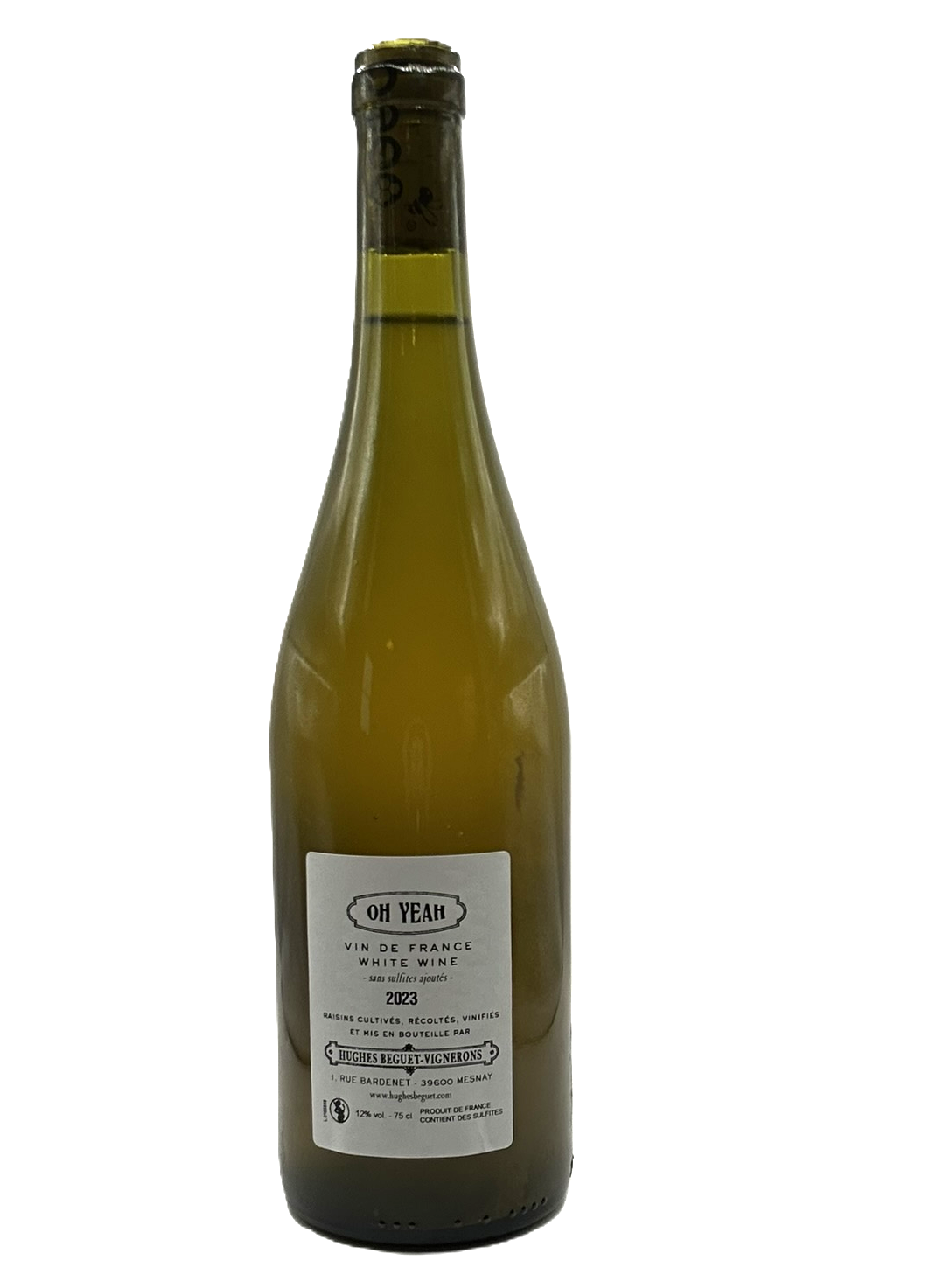 Oh Yeah er en hvid naturvin fra Jura, lavet primært på druen Savagnin (og ofte med et mindre indslag af Chardonnay) fra Domaine Hughes-Béguet. Markerne ligger typisk omkring 300 m over havet. Vinificeringen sker med minimal intervention — spontangæring, begrænset eller ingen tilsat svovl, og en kort periode på brugte barriques eller ståltank efterfulgt af flaske.